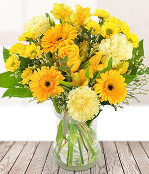 a lovely mix of summer sunflowers, yellow blooms, roses , etc Depending on stock levels,...