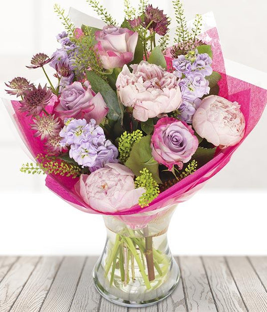 Our expert florist will create your bouquet using the finest purple, lilac and white stems....