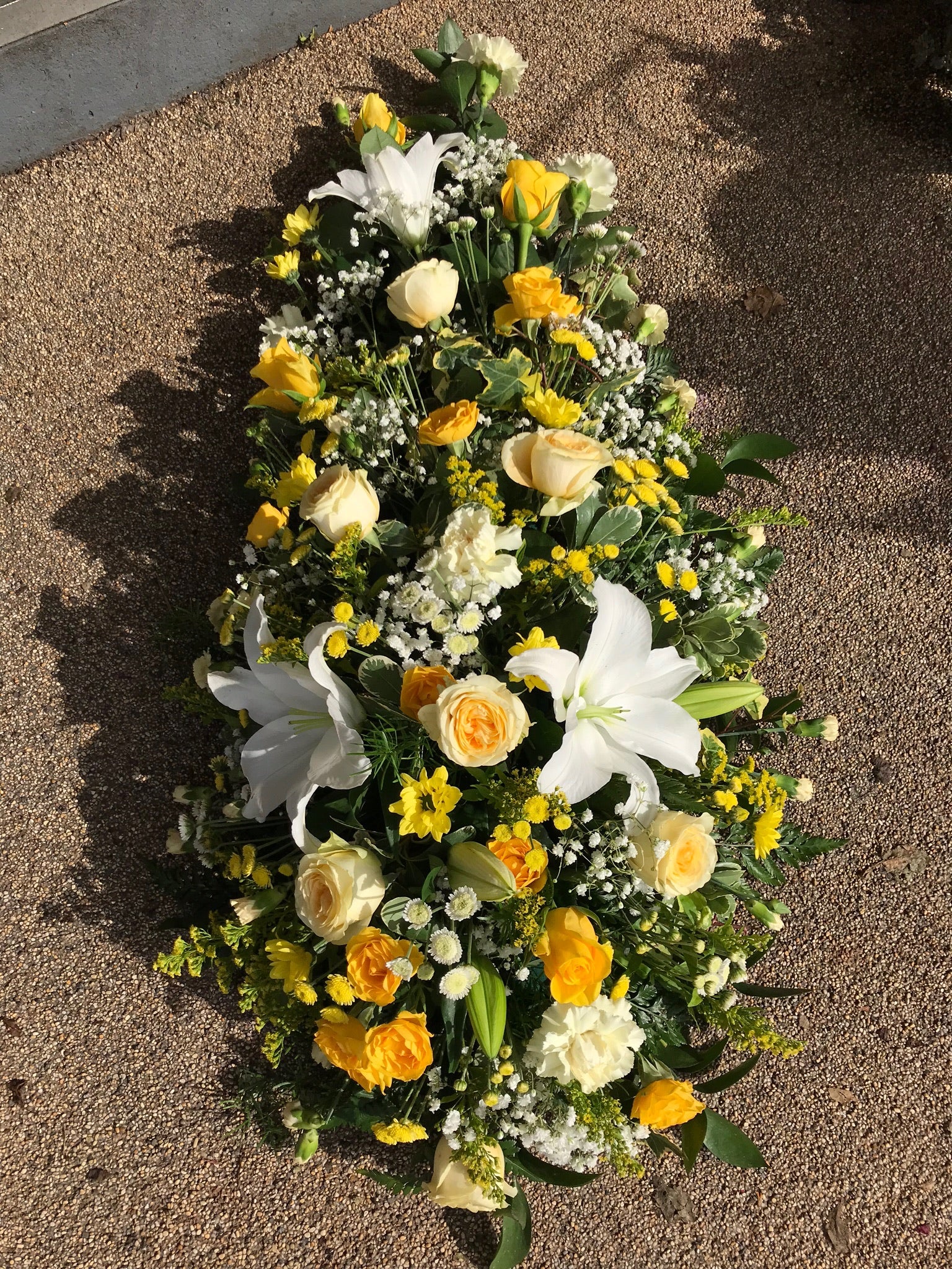 A beautiful single ended spray in yellow,lemon, creams and white shades.(about 3.5 foot long)